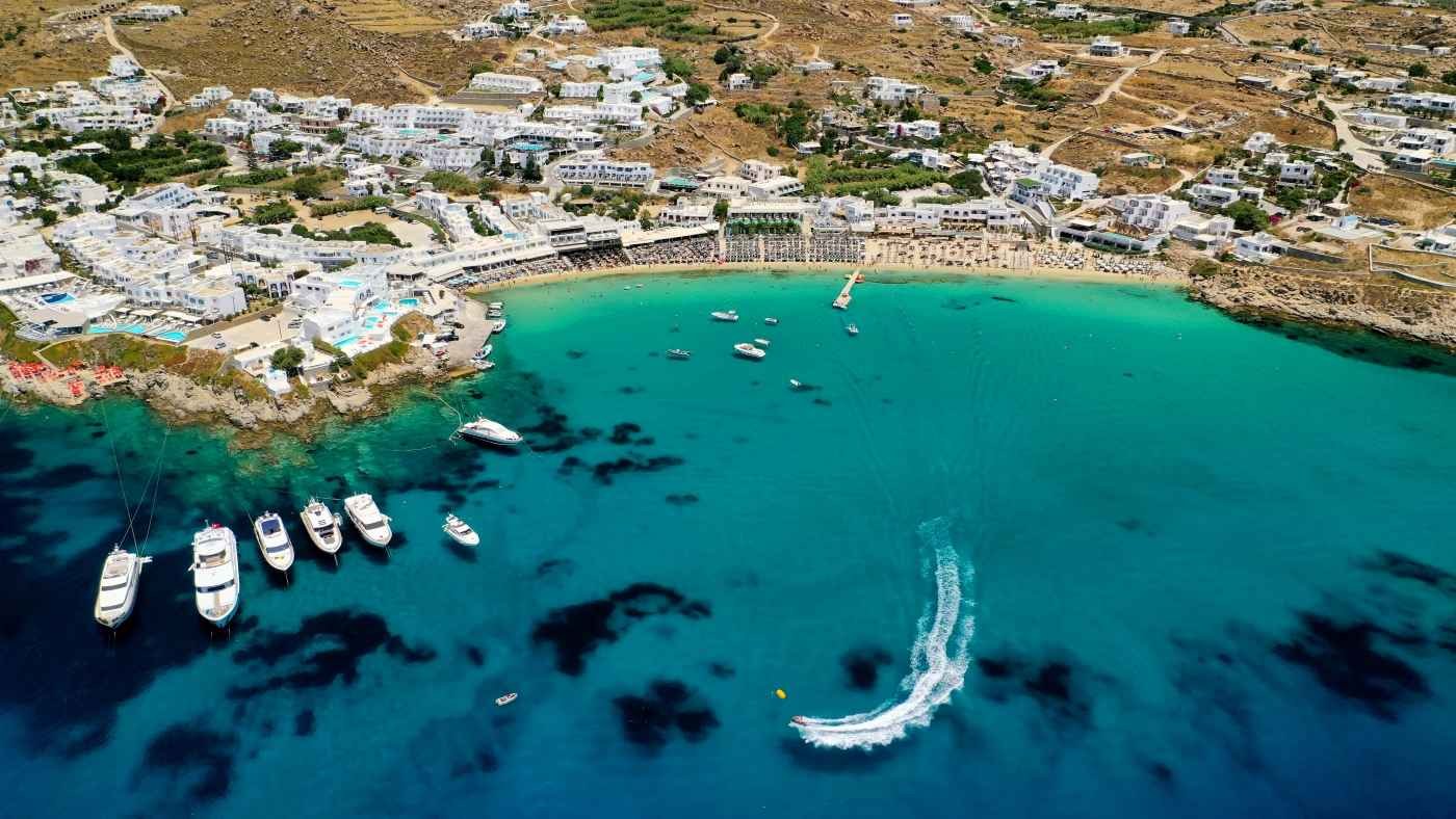 - Praia de Psarou – Ponto de encontro do jet set internacional, com beach clubs luxuosos.